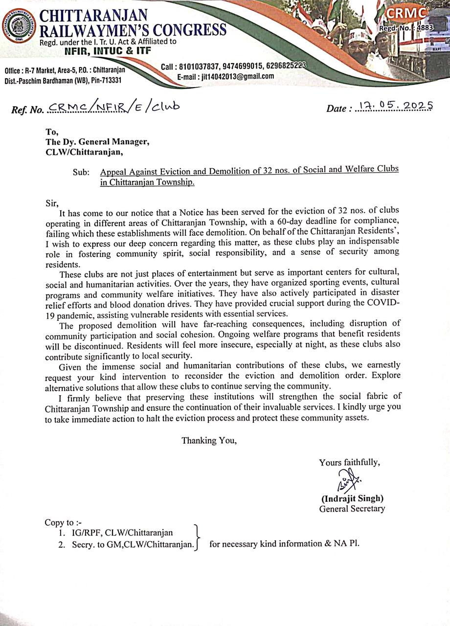 চিত্তরঞ্জন রেল ইঞ্জিন কারখানা দেশের বৃহত্তম এবং প্রথম ইঞ্জিন উৎপাদনকারী সংস্থা হওয়া সত্বেও এখন সেই কাজের পরিবর্তে ইঞ্জিন রক্ষণাবেক্ষণের জন্য গ্যারেজের মত বিশ্বখ্যাত এই কারখানাকে ব্যবহার করার বিরুদ্ধে ক্ষোভ প্রকাশ করল চিত্তরঞ্জন রেলওয়ে মেন্স কংগ্রেস। আজ ২৬ ফেব্রুয়ারি সিএলডব্লুর নতুন জেনারেল ম্যানেজার মোহিত চন্দ্রের সঙ্গে সাক্ষাৎ করে সিআরএমসি নেতৃত্ব বলেন কিভাবে আরো উন্নত মানের ইঞ্জিন বানানো যাবে সেই বিষয়ে গুরুত্ব না দিয়ে চিত্তরঞ্জনকে "পিওএইচ" কাজে ব্যস্ত রাখার চক্রান্ত চলছে। অথচ এজন্য অতিরিক্ত কোন কর্মী দেওয়া হচ্ছে না। রেল বোর্ডের এই পরিকল্পনা নিঃসন্দেহে অস্বস্তিকর এবং ভারতীয় রেল ও রেল কর্মীদের ভবিষ্যৎ সুরক্ষিত রাখতে নতুন ইঞ্জিন উৎপাদনেই বেশি জোর দেওয়ার প্রয়োজন বলে জেনারেল ম্যানেজারকে সিআরএমসি-র পক্ষ থেকে বলা হয়। সি আর এম সি নেতা ইন্দ্রজিৎ সিং আরো বলেন, ক্রমাগত ইঞ্জিন উৎপাদনের লক্ষ্যমাত্রা এখানে বৃদ্ধি করা হচ্ছে কিন্তু কোভিডের সময় থেকে এই কারখানায় ৩ শিফটের ডিউটিকে দুই শিফটে নামিয়ে আনা হয়। সেই পরিবর্তন এখনো চলছে। তিনি বলেন তিন শিফট কাজ না হওয়ায় ইঞ্জিন উৎপাদনের লক্ষ্যমাত্রা পূরণে কর্মীদের হিমশিম খেতে হচ্ছে। সেজন্য ৩ শিফট কাজের নিয়ম আবার ফিরিয়ে আনার দাবি জানান তারা। এরই সঙ্গে অত্যন্ত গুরুত্বপূর্ণ একটি প্রসঙ্গ জেনারেল ম্যানেজারের সামনে আজ উত্থাপিত হয়। ইন্দ্রজিৎ বাবু বলেন সামনেই পশ্চিমবঙ্গ বিধানসভার নির্বাচন। নির্বাচনের কাজে রেল কর্মীদের নিযুক্ত করা হবে। কিন্তু প্রতিবছরই কিছু নির্দিষ্ট সংখ্যক কর্মীকেই নির্বাচনী কাজে ব্যবহার করার ফলে তাদের মধ্যে অসন্তোষ দেখা দিচ্ছে। তারা জেনারেল ম্যানেজারের কাছে দাবি জানান বয়স্ক এবং "মেডিক্যালি আনফিট" কর্মীদের যেন নির্বাচনী কাজ থেকে অব্যাহতি দেওয়া হয়। এরই সঙ্গে টাউনশিপ মেনটেনেন্স এবং কোয়ার্টার অ্যালটমেন্ট সহ বিভিন্ন বিষয় তারা আলোচনায় নিয়ে আসেন। বিষয়গুলিকে গুরুত্ব সহকারে বিবেচনার আশ্বাস জেনারেল ম্যানেজার তাদের দিয়েছেন বলে ইন্দ্রজিৎ বাবু জানান।@প্রান্তভূমি