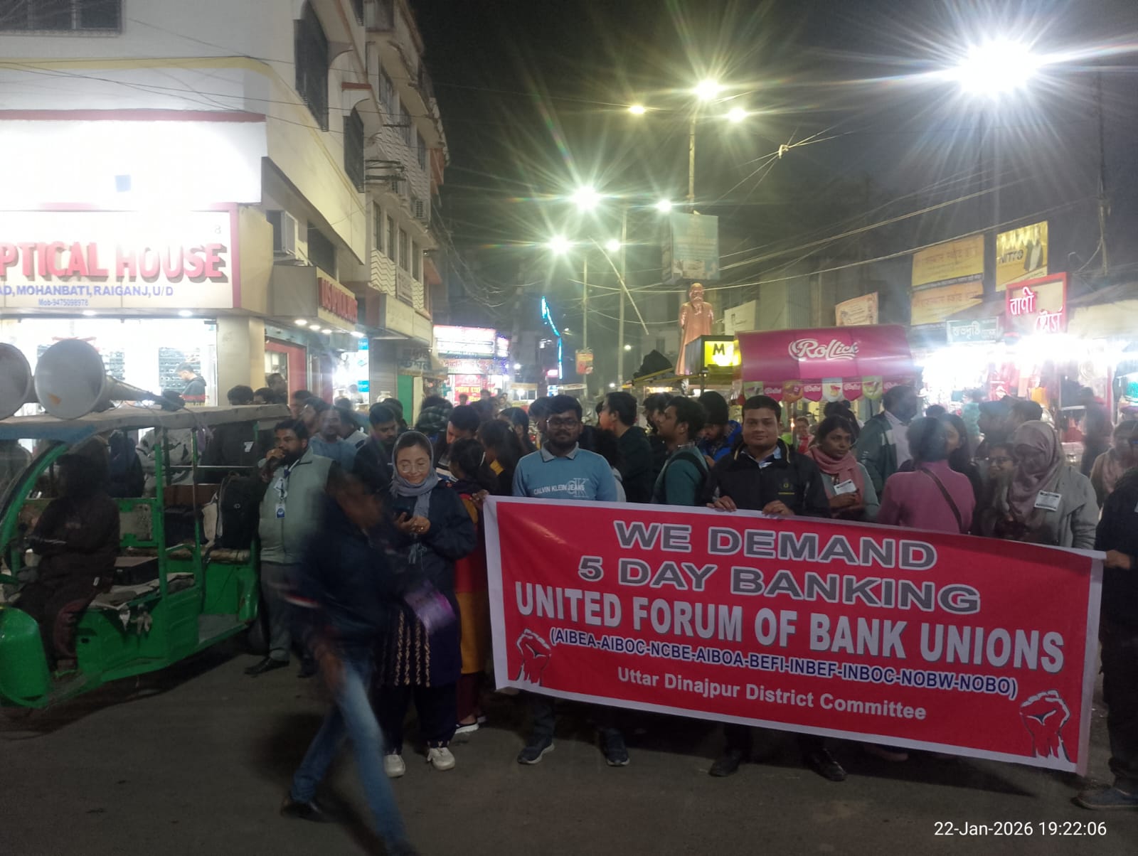 পরপর চার দিন ছুটির পরের দিনই দেশের সমস্ত ব্যাংকে ধর্মঘট হতে চলেছে। এবার সরকারি বেসরকারি ব্যাংক সহ সমস্ত প্রকার এটিএমও ২৭ জানুয়ারি এর ফলে স্তব্ধ হয়ে যাবে। ফলে যাদের নগদ অর্থের প্রয়োজন তারা ২৬ জানুয়ারি তা এটিএম থেকে সংগ্রহ করে নিতে পারেন। জানা গেছে ইউনাইটেড ফোরাম অফ ব্যাংক ইউনিয়নস এই ধর্মঘটের ডাক দিয়েছে, যাকে সমর্থন করেছে দেশের সমস্ত ব্যাংক এবং তাদের সংগঠনগুলি। ধর্মঘট এড়াতে ইউনাইটেড ফোরাম অফ ব্যাংক ইউনিয়নস কেন্দ্রীয় লেবার কমিশনের সঙ্গে পরপর দু'দিন বৈঠকে বসলেও তা ফলপ্রসূ হয়নি। ফলে ২৭ জানুয়ারির প্রস্তাবিত ধর্মঘট এক প্রকার অনিবার্য হয়ে দাঁড়িয়েছে। এ বিষয়ে ইউনাইটেড ফোরাম অফ ব্যাংক ইউনিয়নস-এর পশ্চিমবঙ্গের আহ্বায়ক সুদীপ দত্ত বলেছেন দেশের সরকার তাদের সঙ্গে সপ্তাহে পাঁচ দিন ব্যাংকে কাজের বিষয়টিতে চুক্তি করলেও নানান বাহানায় তা লাগু করছেন না। ২৭ জানুয়ারি ধর্মঘটে যাওয়ার একমাত্র লক্ষ্য হল ব্যাংকে কাজের দিন সপ্তাহে পাঁচ দিন নির্দিষ্ট করা। এ বিষয়ে তিনি বলেন আগে প্রতি শনিবার ব্যাংকে অর্ধ দিবস কাজ হত। ২০১৫ সালে চুক্তির মাধ্যমে মাসের দ্বিতীয় এবং চতুর্থ শনিবার ছুটির সঙ্গেই অন্য শনিবারগুলিতে পুরো দিন কাজ করতে হয়। সেই সময়েই ইউনিয়নের দাবি ছিল সপ্তাহে ৫ দিন কাজের দিন হিসেবে স্থির করতে হবে। সরকার এই দাবিতে সম্মতি জানালেও তা রূপায়িত হচ্ছিল না। শেষ পর্যন্ত ৮ বছর পর ২০২৩ সালে সব পক্ষকে নিয়ে ৫ দিন সপ্তাহে কাজের বিষয়টিতে সব পক্ষ চুক্তিবদ্ধ হয়। কিন্তু সেই চুক্তি সরকার ফাইলবন্দি করে রেখে দিয়েছেন। চুক্তি কার্যকর করার দাবি জানিয়ে একাধিক আলোচনা হলেও তা কার্যকরী না হওয়ায় গত বছর(২০২৫) মার্চে দুদিনের ধর্মঘটের ডাক দিয়েছিল ইউনিয়ন। কিন্তু সে সময় ধর্মঘট আটকাতে ইউনাইটেড ফোরাম অফ ব্যাংক ইউনিয়নস-এর দাবিকে দ্রুত কার্যকরী করার আশ্বাস দেওয়া হয়েছিল। কিন্তু এরপরও সেই বিষয়ে সরকার টালবাহানা করতে থাকায় ২৭ জানুয়ারি এই দাবি পূরণে ধর্মঘটে যাওয়া ছাড়া কোন উপায় নেই বলেই সুদীপবাবু জানিয়ে দিয়েছেন। তিনি বলেন এবারও ধর্মঘট রুখে দিতে দিল্লিতে চিফ লেবার কমিশনার সোনাল মিশ্র আলোচনায় বসেছিলেন। ২২ এবং ২৩ জানুয়ারি সেই বৈঠক অনুষ্ঠিত হয়। বৈঠকে অর্থমন্ত্রক বিভিন্ন ব্যাংক আইবিএ ইউনাইটেড ফোরাম অফ ব্যাংক ইউনিয়নসের প্রতিনিধিরা যোগ দেন। কিন্তু এই বৈঠকও নিষ্ফলা রয়ে যায়। এরপরই ২৭ জানুয়ারির ব্যাঙ্ক ধর্মঘট অবশ্যম্ভাবী হয়ে পড়ে । সুদীপবাবু বলেন সপ্তাহের কাজের দিনগুলিতে অতিরিক্ত ৪০ মিনিট করে ব্যাংকিং আওয়ার্স বৃদ্ধি করে গ্রাহক পরিষেবা দেওয়ার বিষয়টি তারা মেনে নিলেও সপ্তাহে পাঁচ দিন কাজের বিষয়টি সরকার মেনে নিচ্ছেন না। তিনি বলেন এট
