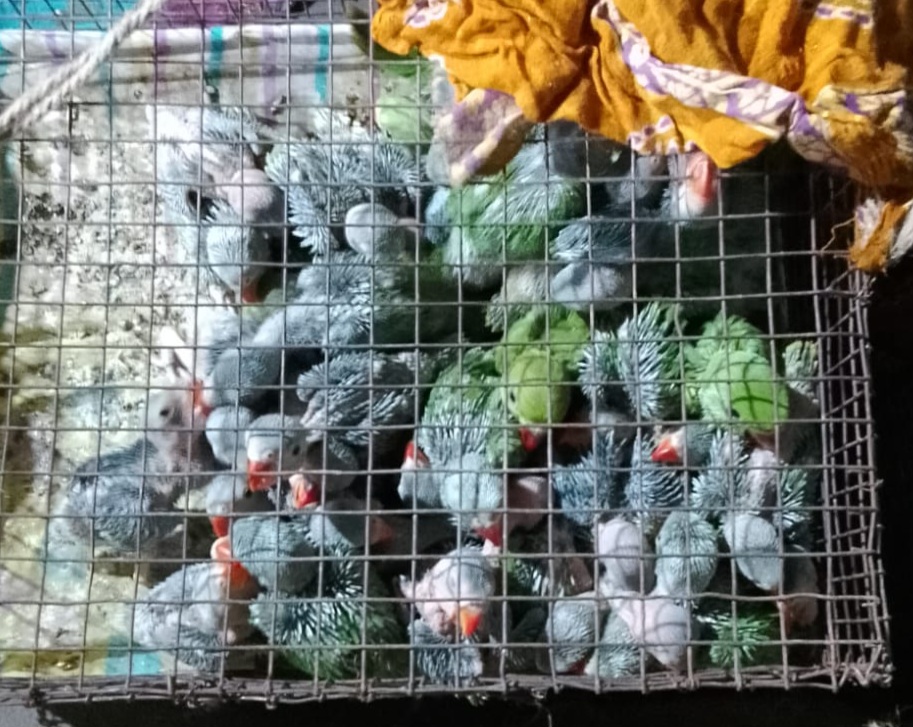 গভীর রাতের অভিযানে উদ্ধার ৬০০ টিয়াপাখি